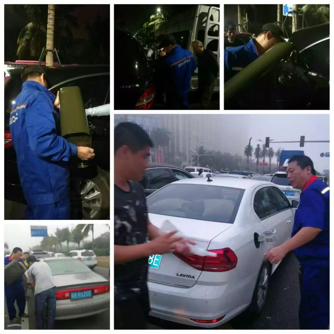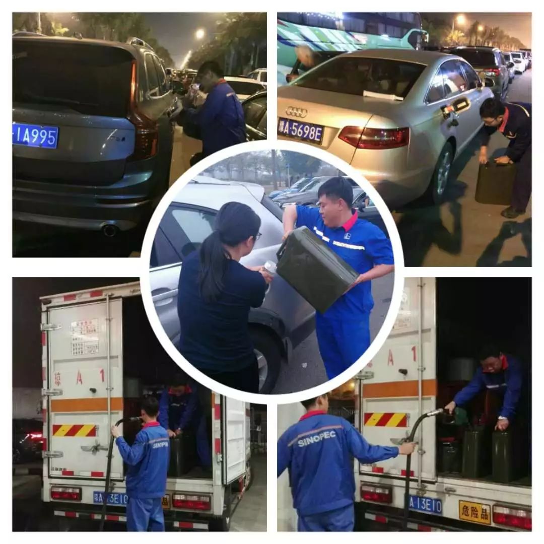 随着需求的增加,海南石油组织堵车路段周边加油站点集中便利油桶统筹安排配送油,同时组织两辆油品配送车,沿途配送油品。