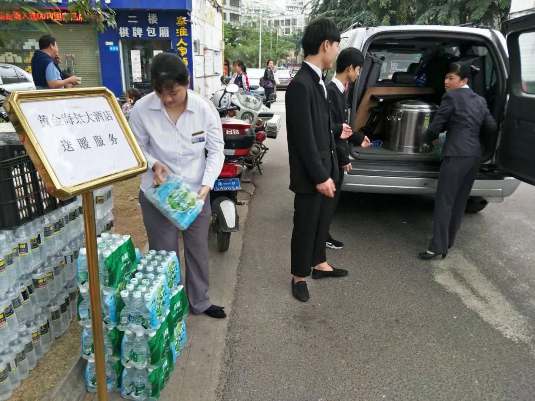 中国石化海南石油组织献爱心队伍,给滞留旅客送去热腾腾的饭食