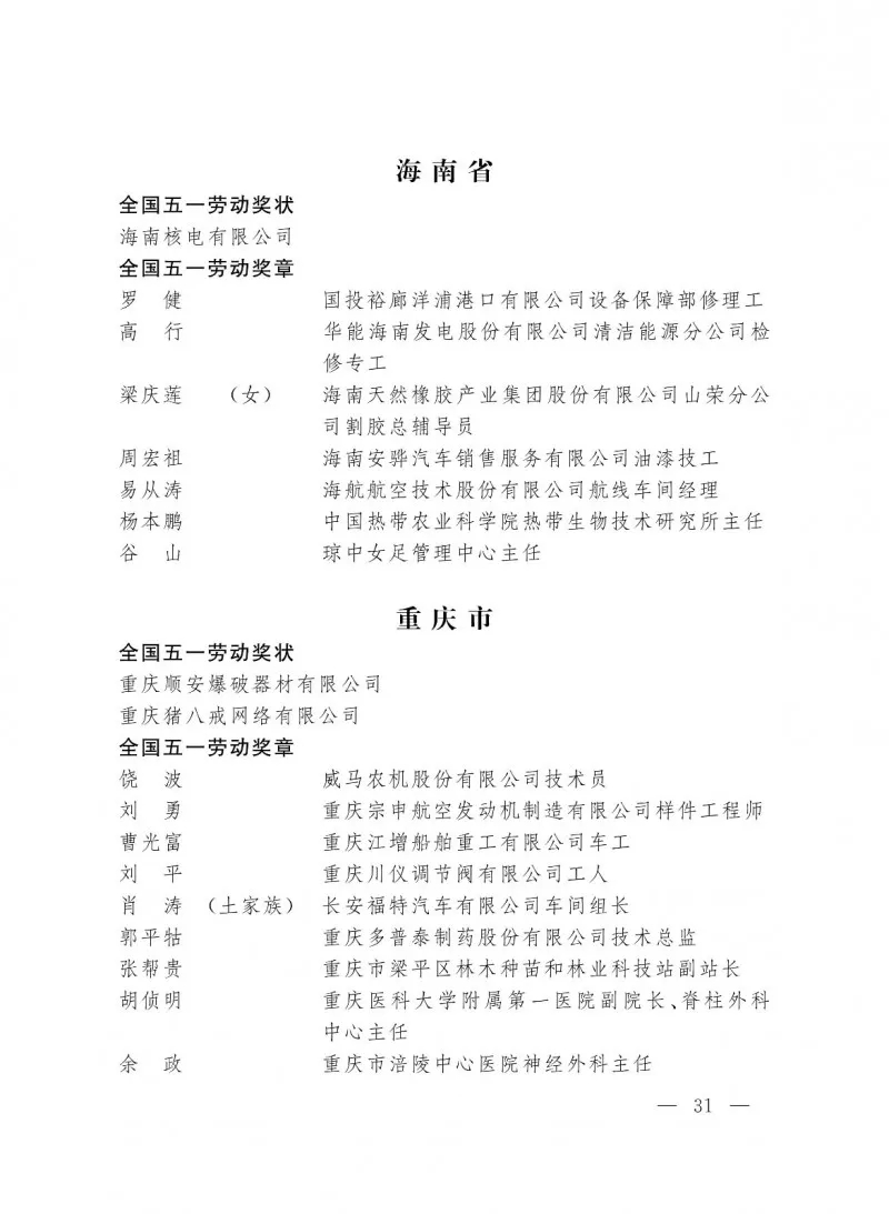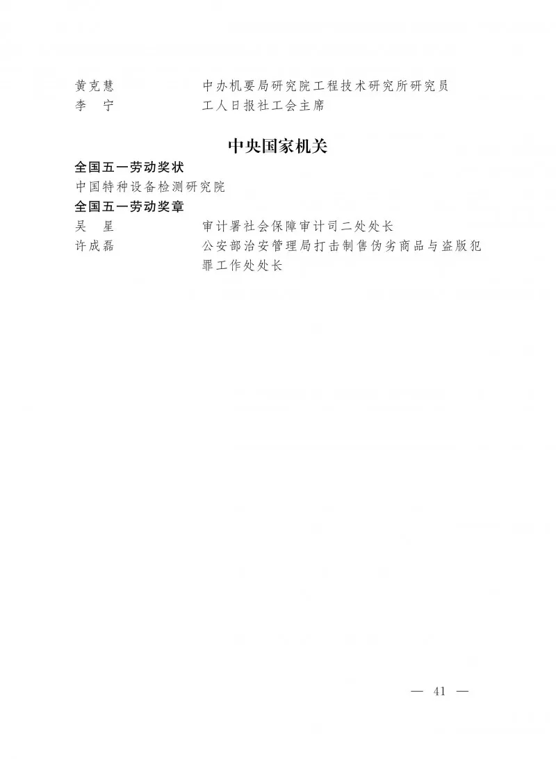 2018年全国五一劳动奖和全国工人先锋号的评审工作已结束。记者从全国总工会4月25日召开的2018年“五一”新闻发布会上获悉,今年全总将表彰全国五一劳动奖状99个、全国五一劳动奖章697个、全国工人先锋号799个。其中,一大批央企集体和个人光荣上榜。