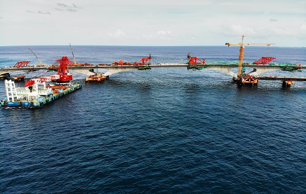 2018年7月9日下午,中国交建承建的援马尔代夫中马友谊大桥主桥20号墩至21号墩之间的钢箱梁成功合龙,至此全桥贯通,为项目按时竣工验收和对外移交提供了坚实保障,开创了世界远洋深海无遮掩环境及珊瑚礁地质上建设特大型桥梁的先河。