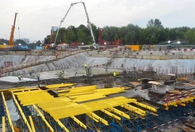 对于模板体系,按照中国的做法,地下室结构可以采用整体浇筑,这样不仅能够保证质量,而且工期短,但在莫斯科这个做法却不被认可。莫斯科当地采用的是工业化模板体系,坚持认为这种比人工浇筑的质量更可靠,但是这种模板体系需要拼装,不能实现柱子、顶板一次性浇筑。为了不影响工期,经过多次沟通协调,俄罗斯业主勉强答应给项目部一次试验机会。