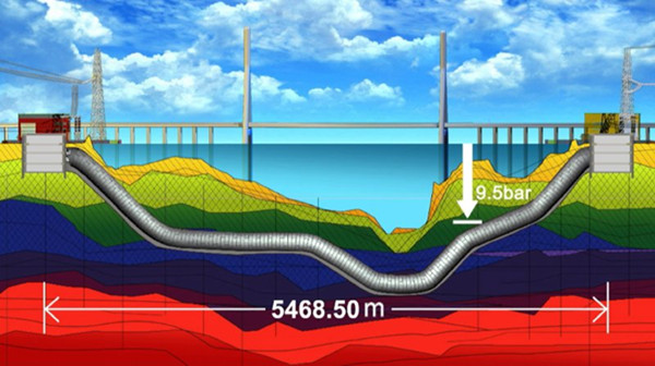 苏通GIL综合管廊工程的两回1000千伏GIL管线,单相长约5.8公里,6相总长约35公里。此次贯通的隧道工程起于南岸(苏州)引接站,止于北岸(南通)引接站,长5468.5米,是目前国内江河埋深最深、水压最高的隧道。其埋深最深处达-74.83米;水压最高达0.8兆帕,是大气压的8倍,相当于一个手指甲盖大小的面积承受近10公斤的重量。江中地质条件复杂,施工难度大,掘进需穿越长江大堤及有害气体层,沉降控制、风险防控要求极高。