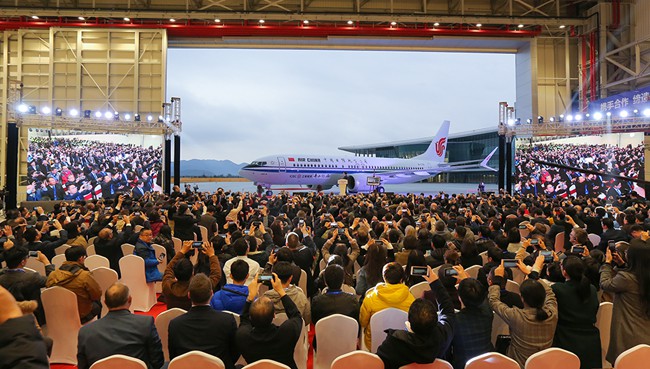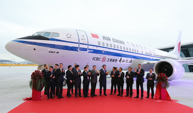 2018年12月15日,中国商飞公司与美国波音公司在舟山共同合资的737完工和交付中心交付首架飞机,飞机由中国国际航空公司接收。