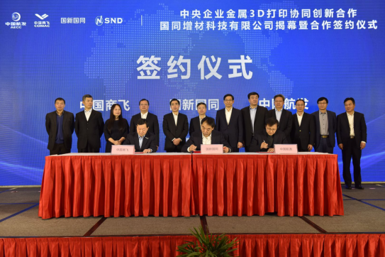 2017年12月19日,国同基金与中国航发、中国商飞签署了三方合作框架协议并开启了合作序幕。随后各合作方积极推进具体合作方案及技术方案的论证和决策,于2018年9月在苏州市高新区注册成立国同增材科技有限公司。本次签约,标志着中央企业对“新技术、新产业、新业态、新模式”的联合探索正式从纸面走向实验室和车间。