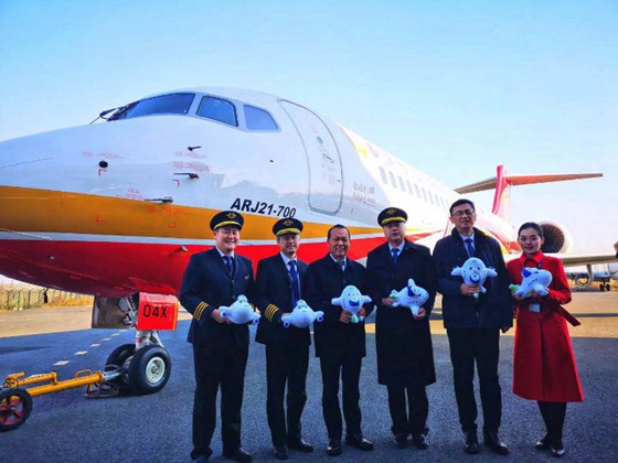 2018年12月29日,一架国籍号为B-104X的ARJ21-700飞机从南通兴东机场起飞,经过约3个小时的飞行到达成都双流机场。这是中国商飞公司向首家用户成都航空公司交付的第10架ARJ21飞机。此次交付标志着成都航空ARJ21飞机机队初具规模,基本形成跨区域干支航线网络,为国产喷气支线客机后续市场化发展和航线网络扩展奠定了坚实基础。