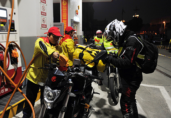 1月21日清晨,中国石油泉州荆山加油站,铁骑们整装待发