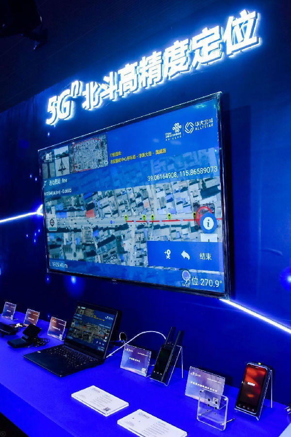 大会现场设置了5G应用展区,有5G量子通信、5G云桌面、5G工业互联网、5G AR安防等众多应用项目可供观众驻足体验。其中,5G+北斗高精度定位项目可依托5G大宽带、低时延等特性,借助边缘计算、网络切片、5G定位等关键技术,在网络侧实现定位融合算法,实现秒级同步网络以及复杂场景下米级的精度定位,把传统基站百米左右的定位精度提高了2个数量级。
