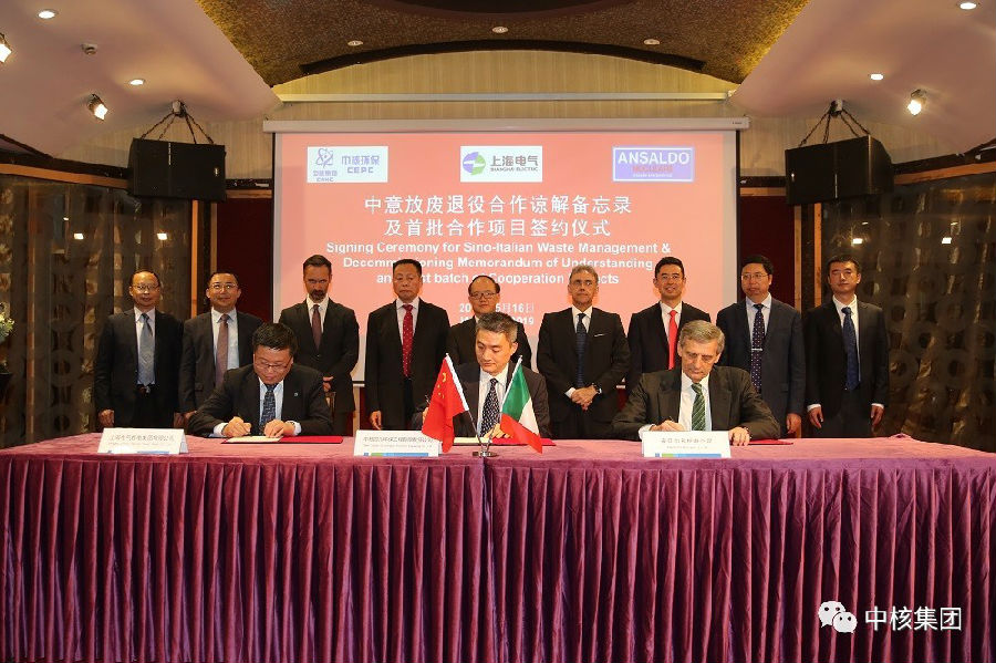 5月16日,中核环保有限公司、上海电气核电集团、意大利安萨尔多核电公司三方在上海签署合作谅解备忘录及相关项目合作协议。