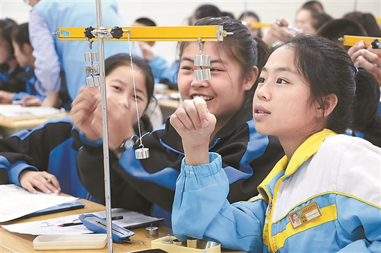 图为北京171中学老师为尼勒克县乌赞中学学生教授物理实验课。项佳佳 摄