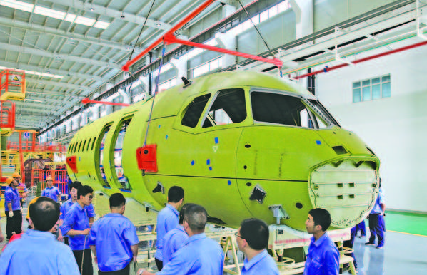 陕飞主要承担“新舟”700飞机前机身部件、前机身与机头对接以及系统结构件的安装工作。经过项目团队前期大量工作,2018年10月,“新舟”700飞机研制工作由工艺准备正式迈向零件加工;11月底,飞机前机身部件全面开铆。2019年4月,“新舟”700部件生产进入攻坚阶段,经过项目团队两个多月的艰苦鏖战,最终确保了静力试验机机身前段顺利下架,为该型机后续研制赢得了宝贵时间。