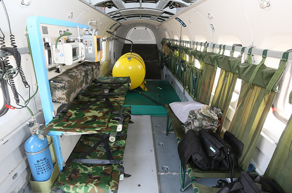 此次参与救援行动的直升机以国产“直-8G”型直升机为平台,是我国自主研发、完全国产化的新型治、送结合的救护直升机。加装了模块化的医疗救护系统,配备了除颤监护仪、急救呼吸机、输液泵、吸引器、电子血压计、脉搏血氧饱和度仪、供氧系统、综合电源系统等设备,可实施搜索营救、遇险急救、快速后送任务。