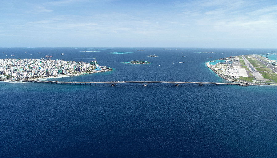 中马友谊大桥2018年8月30日正式开通。这座由中交集团承建的大桥是马尔代夫历史上首座跨海大桥,也是世界首座在远洋深海无遮掩环境及珊瑚礁地质上建设的特大型跨海桥梁。大桥全长2000米,将马尔代夫首都马累和旁边的机场岛连接起来。