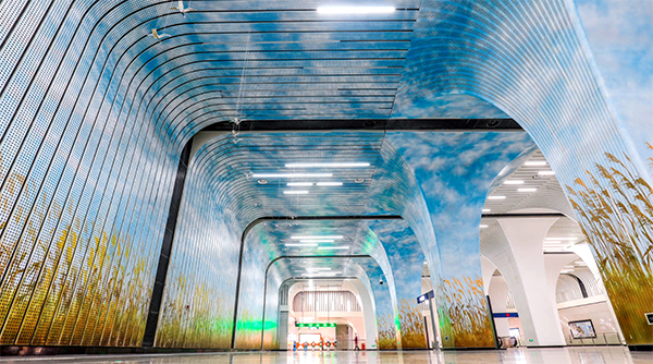 武汉地铁7号线徐家棚站是目前武汉最深的地铁站,站内设计风格以“棚筑新辉”为主题,呈现丰收秋季金色的芦苇。