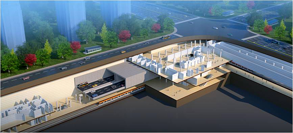 武汉地铁7号线徐家棚站“公铁合建”三维效果图。
