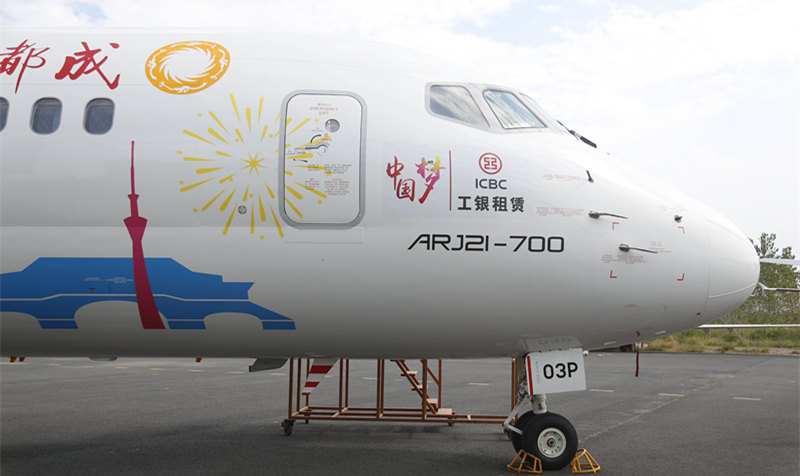 2019年9月26日13时48分,一架“中国梦”涂装的ARJ21飞机,从南通兴东国际机场起飞,于16时20分降落在成都双流国际机场,这是中国商飞公司向成都航空公司交付的第14架ARJ21飞机。