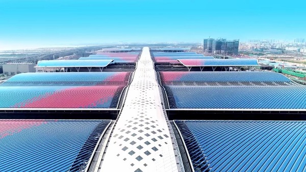 160万平方米的总建筑面积,寓意“海上丝绸之路”的彩色丝带花纹屋面,似远处海面汹涌的波涛和翻腾的浪花,滚滚向前。这座全球最大展馆将于11月4日至6日迎来首展运营。