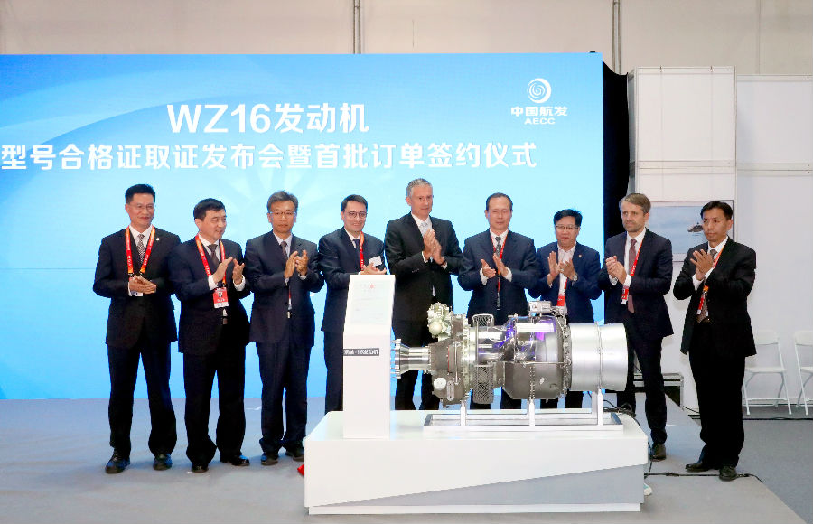 10月10日,中国航空发动机集团有限公司在第五届中国天津国际直升机博览会上召开1300kW级涡轴发动机(涡轴-16)型号取证发布会,宣布该型发动机正式取得中国民航局颁发的型号合格证,并签署了意向订单。
