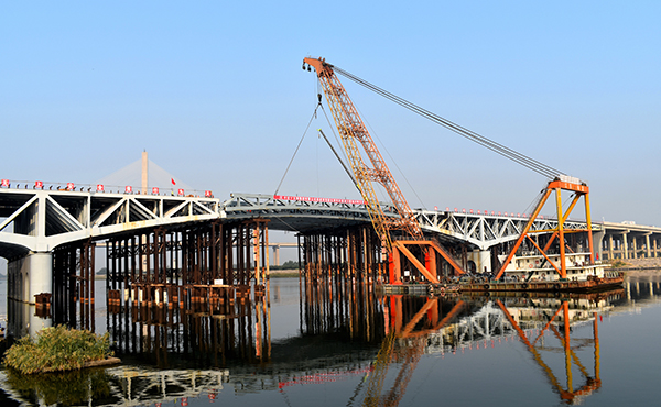 日前,伴随着最后一榀120吨钢桁梁平稳落座,国内最大的钢混组合全焊接桁梁桥——天津市滨海新区西外环高速海河特大桥成功合龙,为明年全线通车奠定了基础。