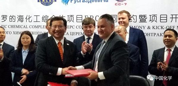 10月11日,中国化学工程集团有限公司(简称中国化学)党委书记、董事长戴和根与俄罗斯RusGasDobycha公司首席执行官康斯坦丁•马哈夫先生(CEO Mr. Konstantin Makhov)在四川成都签署俄罗斯波罗的海化工综合体(BCC)项目FEED+EPC总承包合同,合同金额约120亿欧元。