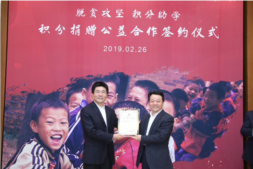 2019年2月26日,中国联通与中国青少年发展基金会在北京举行签约仪式,启动“中国联通积分助学计划”公益项目。“中国联通积分助学计划”公益项目聚焦教育扶贫,围绕青少年成长各阶段,开展多样化公益捐助项目,首期执行项目为“积分助学计划之‘圆梦’行动”,依托中国青基会“1+1”希望工程项目,重点面向中国联通“4+1”定点扶贫县义务教育阶段的贫困农村学生提供助学金资助,旨在帮助他们缓解家庭经济困难,改善学习、生活条件及完成学业。