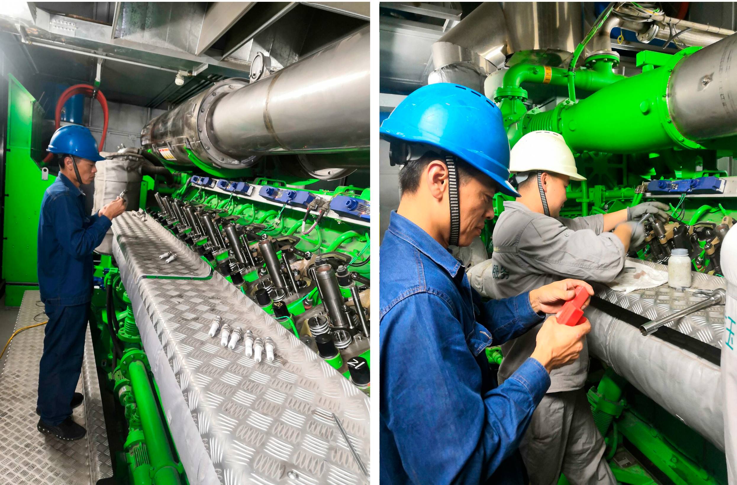 今年国庆,台风“米娜”来袭,不少能源站的工作人员依然坚守岗位,按照供能保障方案,在全面做好防台防汛的同时,全力配合做好第二届进口博览会的准备工作;主动错开内燃机组的保养时间,前三季度已分阶段完成1号、2号、3号、4号内燃机8000小时定期保养和5号、6号内燃机6000小时定期保养工作,确保所有机组和供能设备全方式、全接线运行;7月底,提前采购机组易损件的备品配件,确保在机组出现缺陷和故障时能在最短时间内更换故障元器件,恢复机组正常运行;提前进行应急预案演练,做好供能中断事故预想,自9月起至今,能源站已开展6项各类型应急预案演练,持续锻炼、提升公司人员应对突发事件的能力;提高环保管控能力,完成能源站2台热水锅炉低氮燃烧改造,加强内燃机组运行排放管理工作和烟气排放指标测试工作,从9月10日起稳定保持内燃机组达标排放。