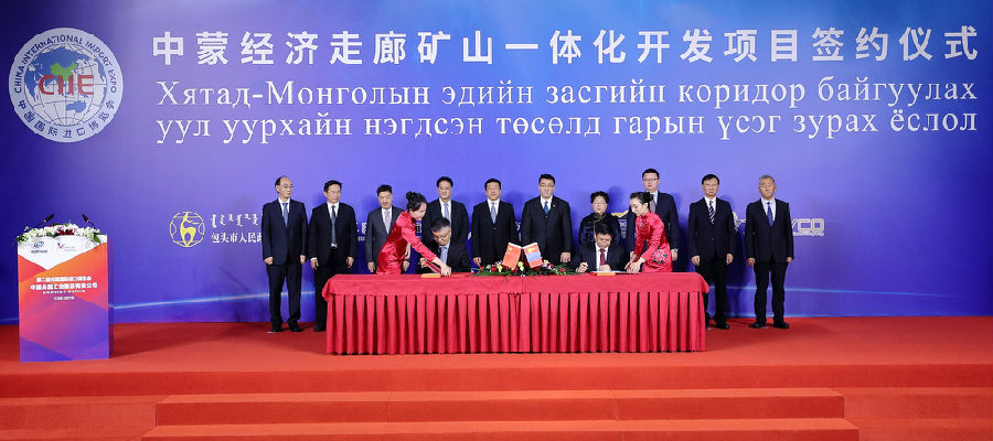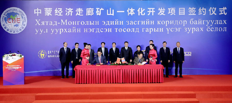 11月4日,第二届中国国际进口博览会开幕前,中国兵器工业集团有限公司签约中蒙经济走廊矿山一体化项目。