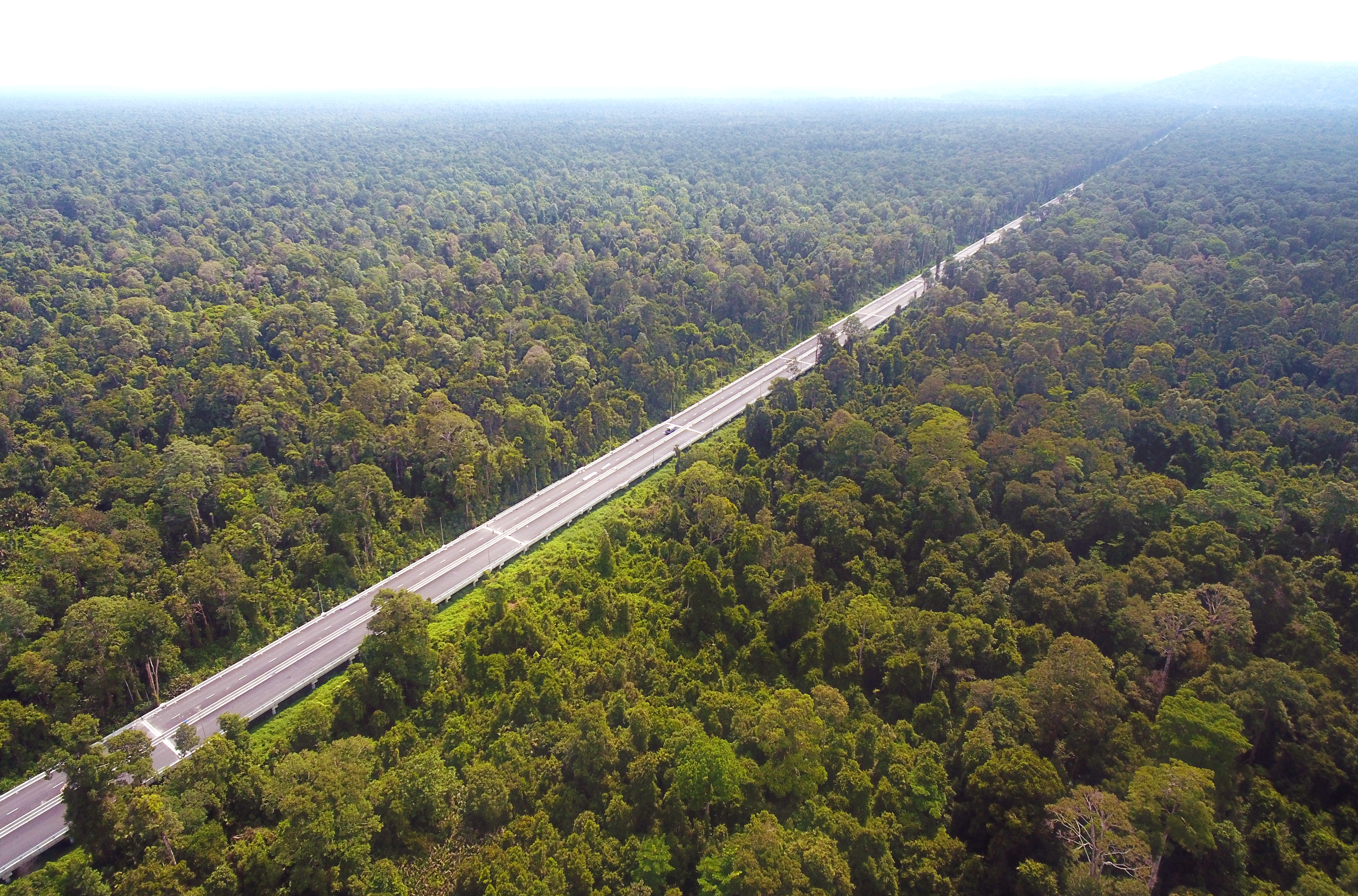 文莱淡布隆跨海大桥跨越文莱湾,是世界上最长的全预制桥梁,也是文莱国家历史上最大的基础设施工程。大桥全长约30公里,建成后,将成为连接文莱穆阿拉区和淡布隆区的海上大通道,两地车程时间可由现在的2小时缩短至15分钟左右。中建六局承建的CC4标段全长约12公里,其中包括约11.6公里长的全预制装配式高架桥,穿越未经人类开发的热带原始雨林。