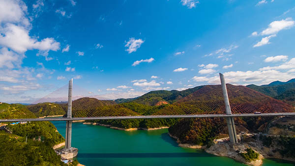 河惠莞高速公路龙川至紫金段全长约152公里,位于广东省高速公路网规划广龙高速(S6)的最北端,大致呈南北走向,起点位于粤赣两省交界处,与江西省宁都至定南高速对接,终点位于紫金县紫城镇,与河惠莞高速紫金至惠阳段相接。项目全线采用双向四车道高速公路建设标准,设计时速100公里。中交集团承建标段长约12.86公里,其中,关键控制性工程枫树坝特大桥主桥长640米,为双塔单索面预应力混凝土斜拉桥。