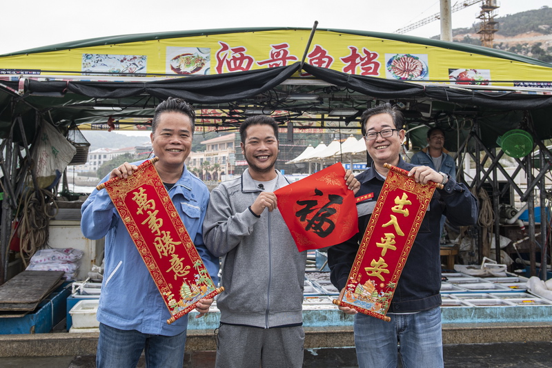 得知春节前电价实现了同网同价,以渔业为生的当地百姓,开心地与供电人员一起憧憬未来。