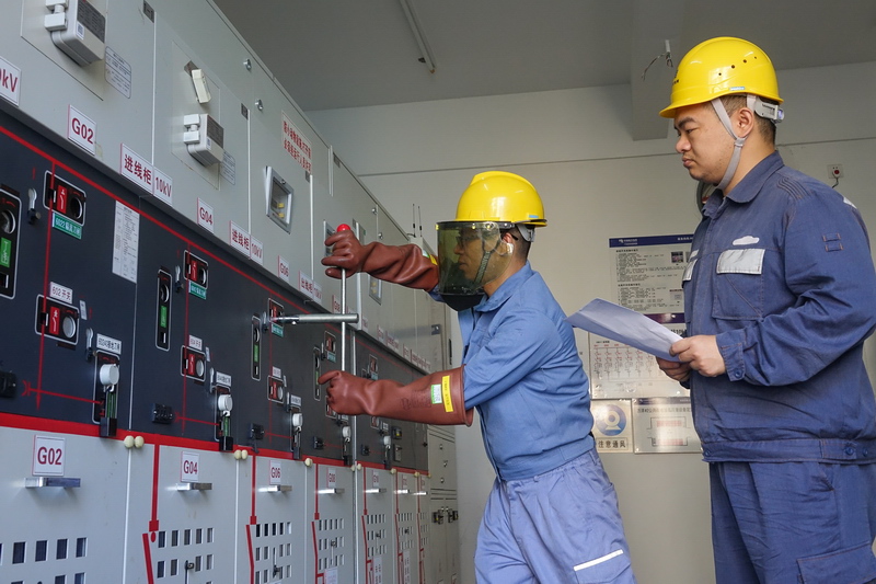 南方电网广东珠海供电局运维人员在大万山岛上配电房内进行市电电源转接操作。朱甸 摄