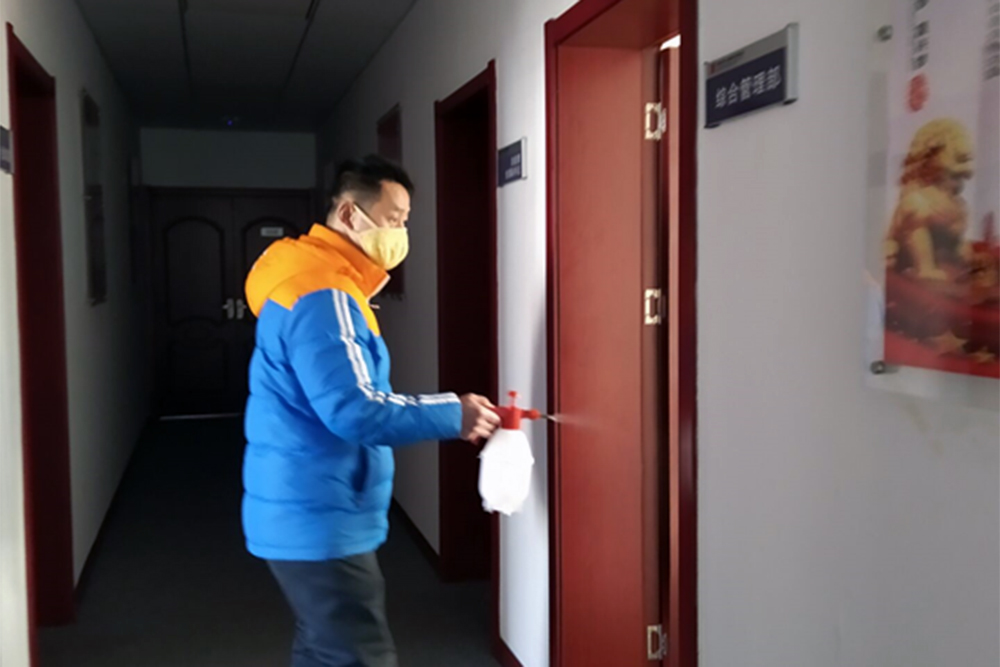 中国水利电力物资武汉公司职工正在对办公室等生产经营场所进行消毒