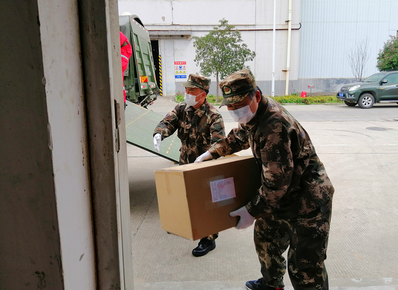 24日,运输分队再次受领任务,将内蒙古自治区捐赠的40余吨肉类生活物资分配到雷神山医院,用于保障医护人员的生活。此外,他们还将人福医药湖北有限公司物流中心80万只口罩、370套防护服转运至江夏区仓库,用于社区防疫。