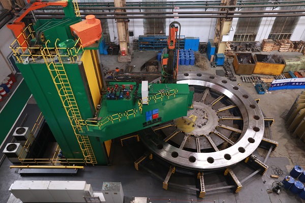 哈电集团组织加工全球首台百万千瓦白鹤滩水轮发电机组4号机底环。