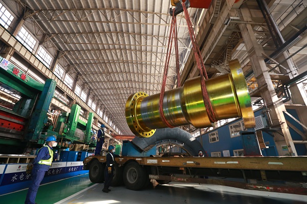 哈电集团有序复工复产,操作者正在吊运两河口4号机主轴。