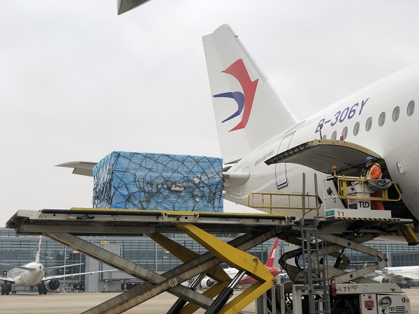 与此同时,来自多个货源地的物资陆续向着东航物流的绿色通道汇集。首批来自四川的物资在3月12日凌晨即从虹桥转运抵达东航物流浦东机场北货站,至3月12日下午,其他方面过来的物资陆续运抵浦东,迅速完成打板、装载工作。
