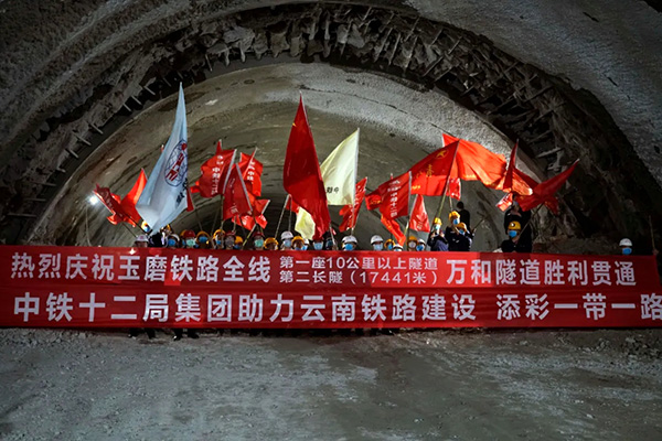 3月13日,中国铁建所属中铁十二局集团承建、铁五院监理的“一带一路”关键工程,泛亚铁路中线重要组成部分——中老铁路万和隧道提前10天贯通,这也是全线贯通的首座万米级长隧。