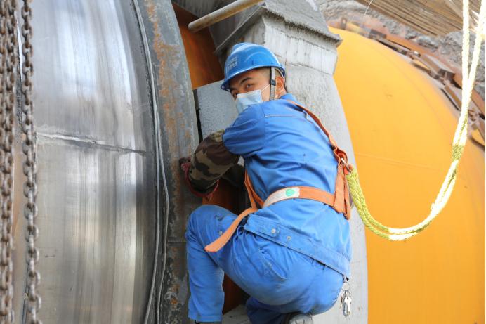 钟祥水泥公司设备维修人员检修大窑窑头护壁