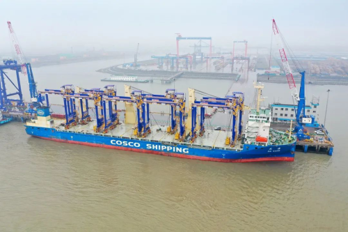 3月25日,中远海运特运“大三”系列重吊船大康轮在江苏太仓港成功将8台橡胶轮胎门式起重机(RTG)顺利装船,这是继2014年该公司大德轮首航满载7台RTG,创造世界同类型船舶一次性装载RTG整机数量最多纪录后,再次刷新世界纪录。