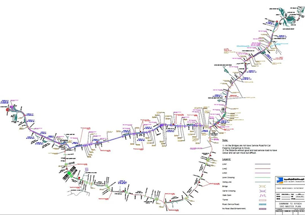 项目位于达曼至利雅得铁路2号货运沿线,红色线路为2号货运线。