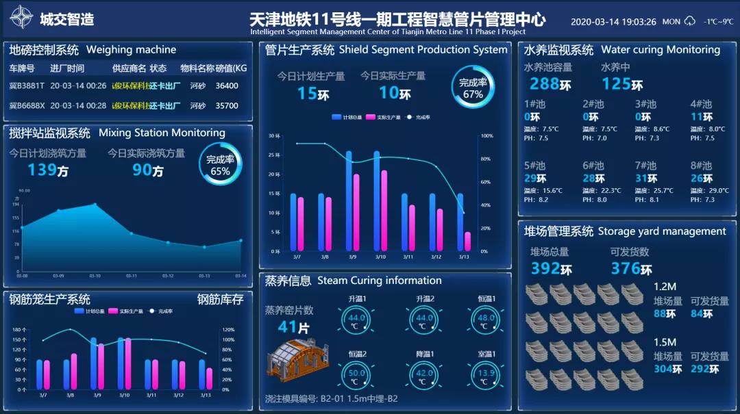 “每天系统高速运转,收集管片施工过程中人、机、料和施工过程等信息,实时盘点库存材料,时刻准备损耗率超限预警,显示当前材料可预制管片的数量,实时定位管片存放,实时显示存放量和可发货量,超量提前预警。”席睿是“一航智造”系统的主要设计成员,每每谈起这套系统,他的眼神中无不透露着自豪,“它让我们的工作变得越来越精确,越来越便捷!”