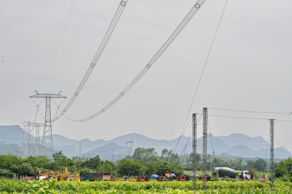 5月14日,在广西河池洛东镇境内100多名现场施工人员的齐心协力下,乌东德电站送电广东广西特高压多端混合直流示范工程(简称“昆柳龙直流工程”)跨越黔桂铁路架线段最后一根导线成功升空,标志着由南方电网投资建设的世界首个特高压多端混合直流输电工程线路实现全线贯通。该工程线路全长1452公里,横跨云南、贵州、广西、广东四省区,这是南方电网落实西部大开发国家战略西电东送通道重大项目所取得的关键进展。