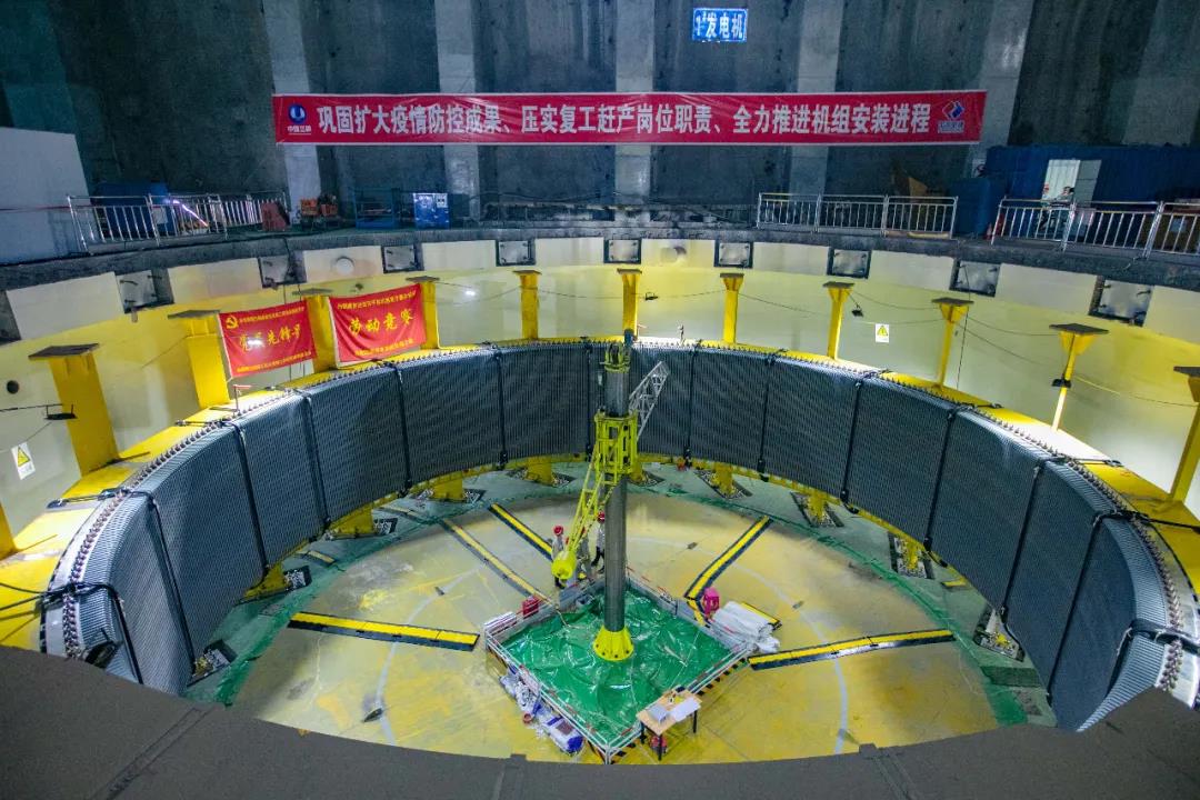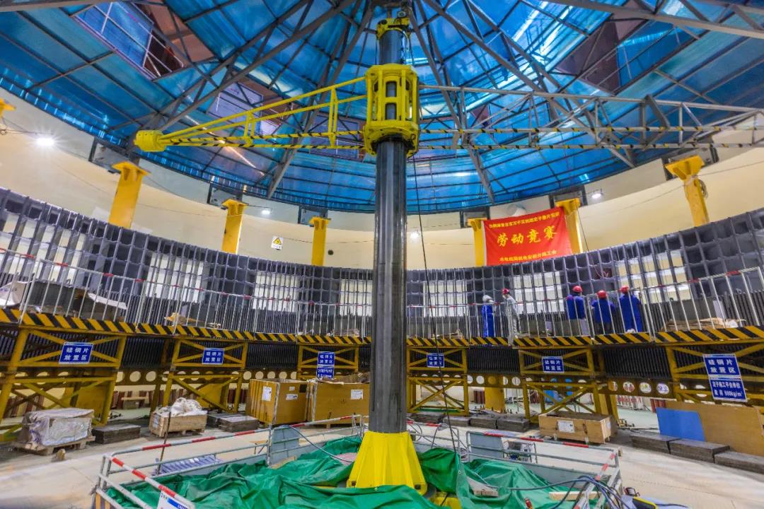 5月14日凌晨4时40分,世界首台100万千瓦水轮发电机组定子铁心在白鹤滩水电站左岸地下厂房1号机坑一次性通过磁化试验,标志着白鹤滩水电站首台机组已具备定子下线条件。