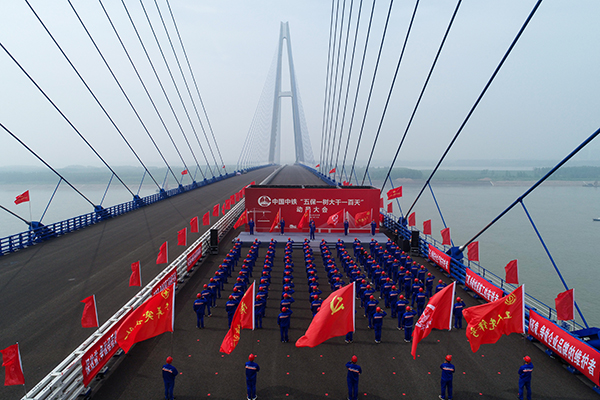 中国中铁大桥局武汉青山长江大桥项目部130名建设者庄严宣誓