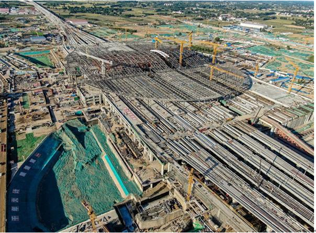 5月29日上午9时许,京雄城际铁路雄安站京雄车场钢结构主体的最后一根钢梁平稳吊装到位,标志着该站京雄车场主体结构顺利完工,为京雄城际铁路2020年底如期通车奠定了基础。