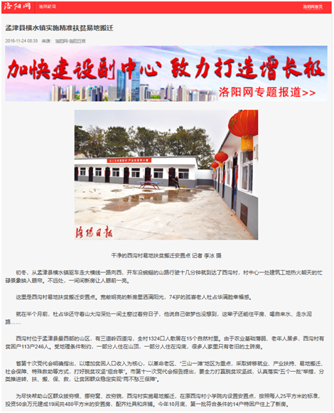 贫困村西沟村顺利搬迁,该厂驻村第一书记给予目标:实现“搬得出、稳得住、能发展、可致富”。