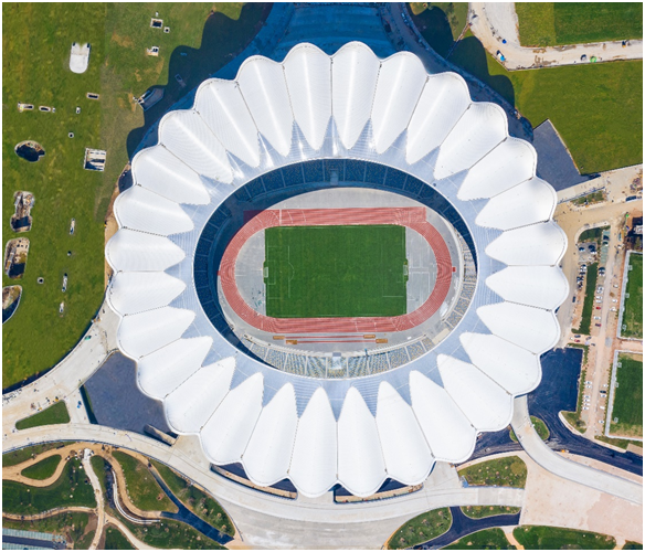 在克服项目深基坑、高结构、大跨度等难点,创造“华润速度+西安效率”的同时,华润置地还充分考虑区域历史人文,使用新技术、新工艺为场馆增色加分。如奥体中心6万座体育场,整体造型取意西安市花石榴花,同时通过有韵律的变化,表达丝绸飘逸的质感。为了完美呈现这种造型质感,项目借助“BIM+3D扫描”技术深化设计,用6020块各不相同的异形结构,在5.8万平方米的金属屋面上勾勒出28朵造型各异的石榴花瓣,高低起伏、轻盈通透的屋面采用1毫米厚铝镁锰合金板材料,夜晚配合灯光,能透出内场热烈氛围,宛如皓月长空下绽放的盛世之花,兼具实用性与美观性。
