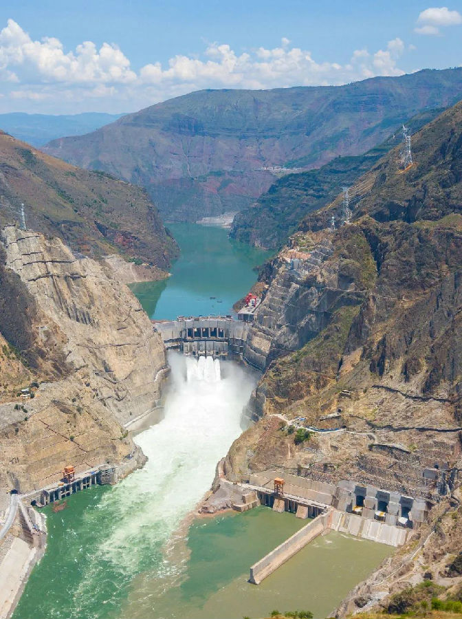 乌东德水电站位于四川省会东县和云南省禄劝县交界的金沙江河道上,是金沙江水电基地下游河段四个水电梯级的第一梯级。工程于2011年开始筹建,2015年底开工建设,是党的十八大以来我国开工建设并建成投产的世界级巨型水电工程,开发任务以发电为主,兼顾防洪、航运和促进地方经济社会发展。