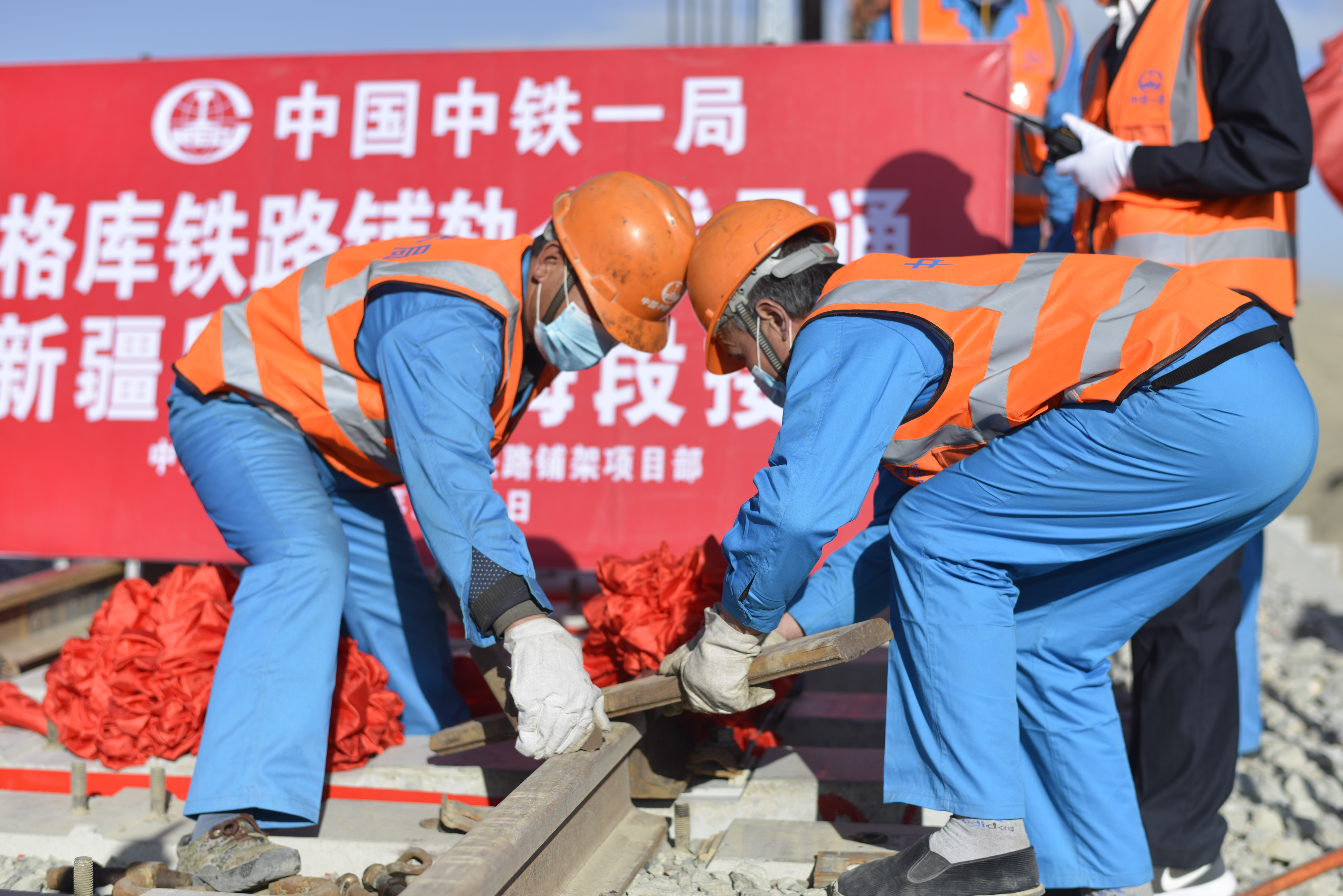 7月21日,在新疆与青海交界处的格库铁路建设工地,随着一声号令,中铁一局员工操纵着大型铺轨机,将格库铁路新疆段最后一节轨排铺设到位,与青海段成功接轨,宣告格库铁路全线铺轨贯通,标志着这条被誉为“大漠新丝路”的铁路建设取得重要进展,为下一步格库铁路全线开通运营打下了坚实的基础。