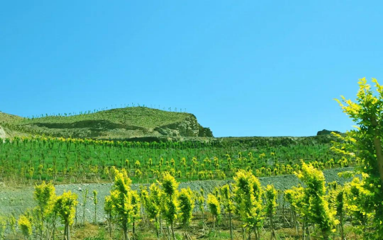 2018年5月10日,项目开工,恶劣的环境给人“迎头一击”。燕南山以沉积岩、砂砾为主,山体碎石裸露、千疮百孔,土层薄、盐碱重、蓄水能力差,有机质平均不足3厘米,是植被生长的“生命禁区”,山上寸草不生。项目部决定给荒山“移植皮肤”——将山体裸露的岩石挖出,再填上0.6米至1米厚的种植土。项目在乌拉泊、五家渠等地购置种植土,平均每天400余辆大型土方车来回穿梭,历时5个月,共“引进”56万立方米种植土,整个山体“脱胎换骨”。随后,项目部采取覆土、开沟、阶梯、点穴、铺设等措施,人工开挖5.2万个树坑,机械开挖16.9万个树坑、108公里沟槽和30公里梯田式平台,建设5个蓄水池,铺设70公里灌溉管线,为燕南山绿起来打下坚实基础。