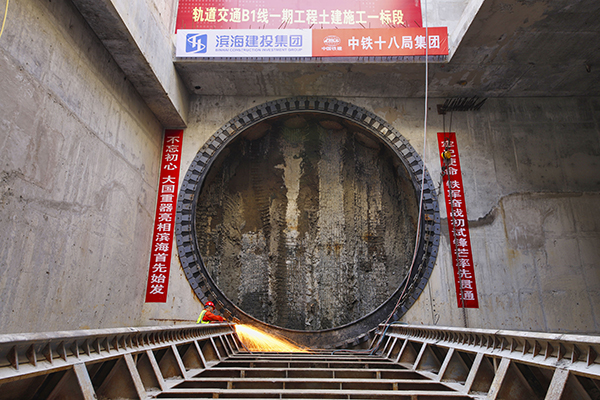 9月21日,随着直径近7米的“老虎团·滨海号”盾构机破土而出,标志着由中国铁建所属中铁十八局集团五公司参建的天津滨海新区首条地铁B1线欣嘉园东站至欣嘉园站隧道安全贯通,顺利实现关键控制性工程,为全线建成创造了有利条件。
